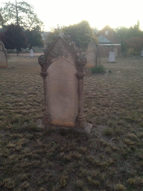Next to our house on the way back, we realised we had a cemetery next door. Colonial or pioneer graves. Not easy to read the inscription.
