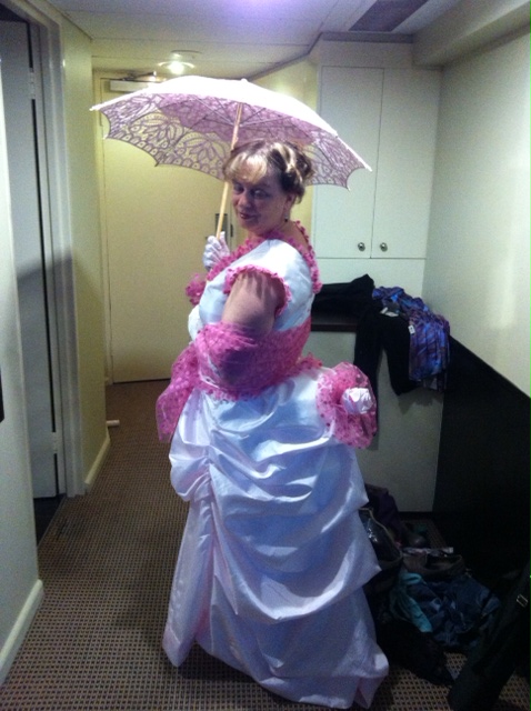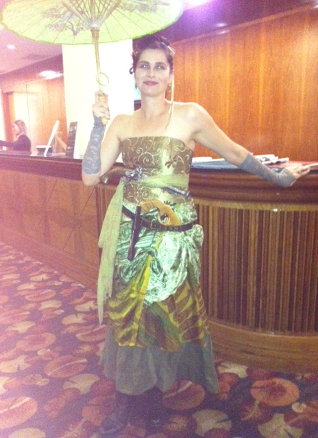 I went to the Pistols and Parasols banquet. I went to NZ so had to rush my bustle dress but I was pleased with the result. I also had a very pretty parasol. See picture that Matthew took below. I totally wanted to do ‘bustle punk’.