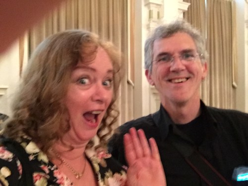 After a bit of phone tag, I met Einar and he joined Thomas and my daughter. Einar and I went to get a drink and it was surprising the but the queue moved quickly. The bar staff were very efficient. Then John Morris and Sara Lindberg joined us so we were very multicultural. So with all the crowd around us we talked stuff. I talked convention running and Iceland with Einar. Then when it came time to leave, I called Thomas, James. OMG! Then he told me I called him something else earlier in the day. I’m so embarrassed.