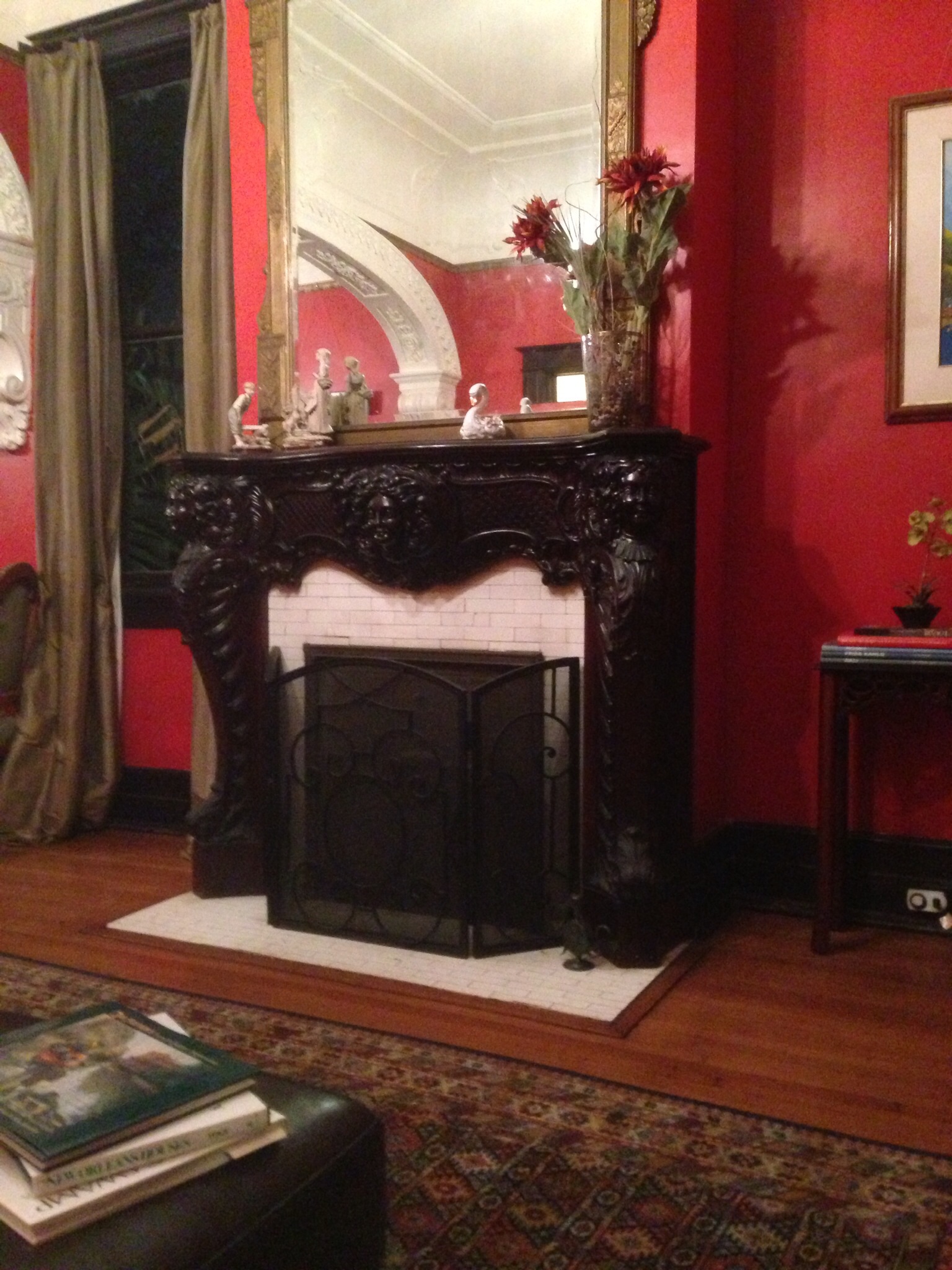 Here is a pick of the house. It has a raised basement, which is where my room is.  It was built early 1900s. Below is a shot of the parlour, and a lovely ornate fireplace.
