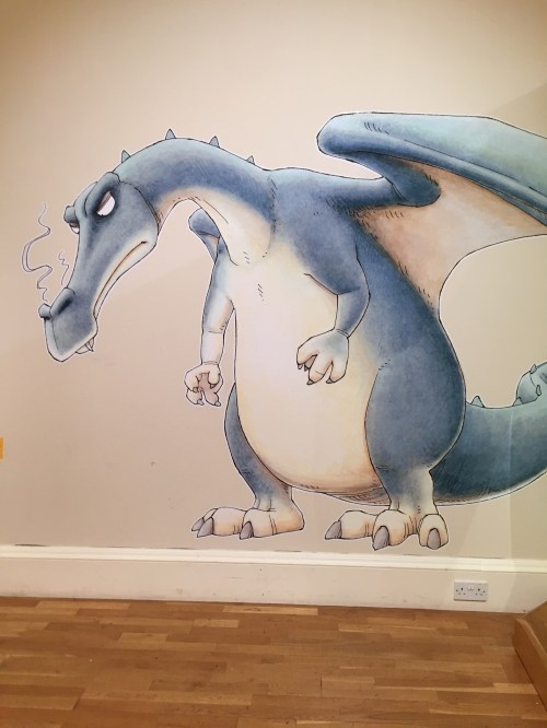 We walked down to the Victoria Gallery to see the Dragon Exhibition. There was some wonderful work there. The exhibition was centred on children I believe and a lot of the illustrations were from children’s books. As it was raining when we finished, we took in the permanent exhibition too. Here are some of the art that was painted on the wall. There was an app that went with this exhibition where you find eggs. We hunted around for a couple and found them. I later found all but one before leaving Bath.