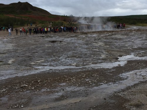Then there was the Geysir and what looks like the bog of eternal stench. It did not smell bad at all. We got video of the geysir, Stokur, I think it’s called, going off. My daughter was taken by surprise as she wasn’t expecting it. Then it went off with three blows, then it sort of just gurgled a bit why we waited to film in and then I got film of a double whammy.