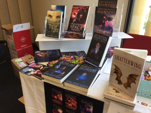 In the week prior to Conflux, I went to Bourke on a creative and cultural trip through the university. More about that in another post. That meant I had to have everything prepared for Conflux and the launch prior to leaving. I was crazy busy doing that. Without my wonderful partner, Matthew, who collected books for me from the post office while I was a way I would have been insane before the convention started.