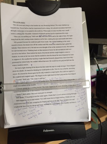 Because I have RSI and arthritis and so on, I have to be careful how long I spend on the computer. The longer I spend on the computer the more attention I have to pay to ergonomics. One of the ways I tackle this is that I print out the MS in bits, read them, edit them and then key in changes later. On the weekend, this was proving a bit difficult so I went to Office Works and bought a copy stand. This allows me to have the MS held up at screen height, next to the screen and made the transcribing of the corrections so much more quicker, but also less demanding on my neck. I have a small space to work in and that meant holding the print out and trying to type stuff in. With the copy stand I have both hands free.