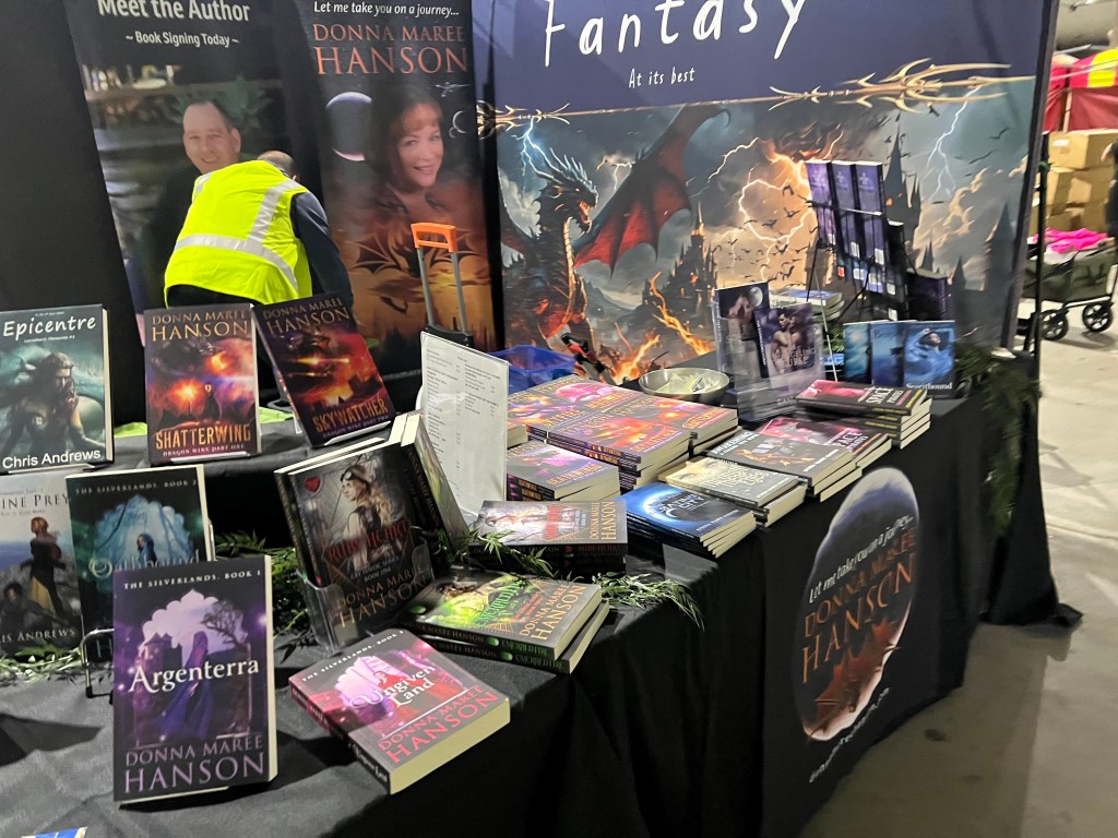 On Saturday, I also shared a table to sell books at the Geek Markets here in Canberra. Again, this was to help me get back into my writing groove. It’s not all just about drafting, revising and editing. There’s actual promotion, selling and getting into the scene. I had an okay day. I sold books, talked about my books and answered questions about my books. I hung with fellow writers, some I haven’t seen in two years.