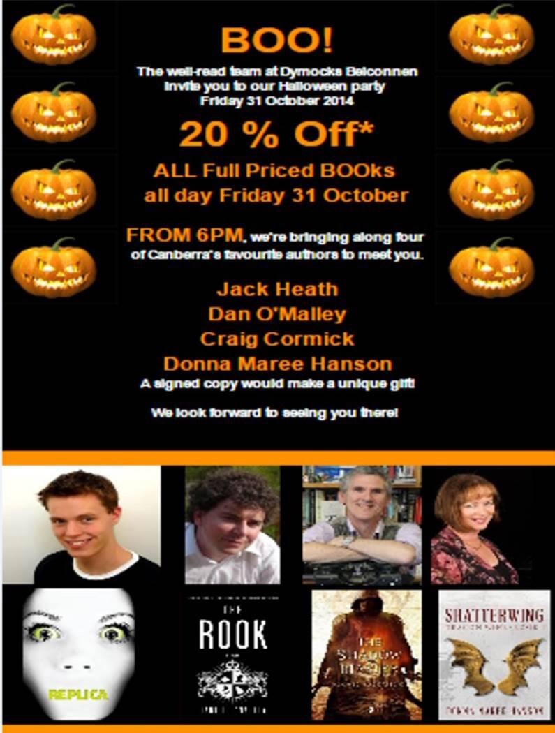 The lovely guys at Dymocks Belconnen hosted an author event at their store on Friday night 31 October, Halloween.
